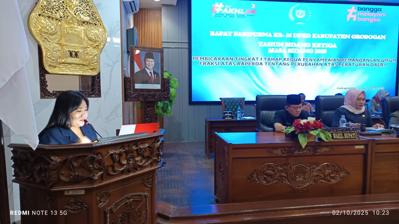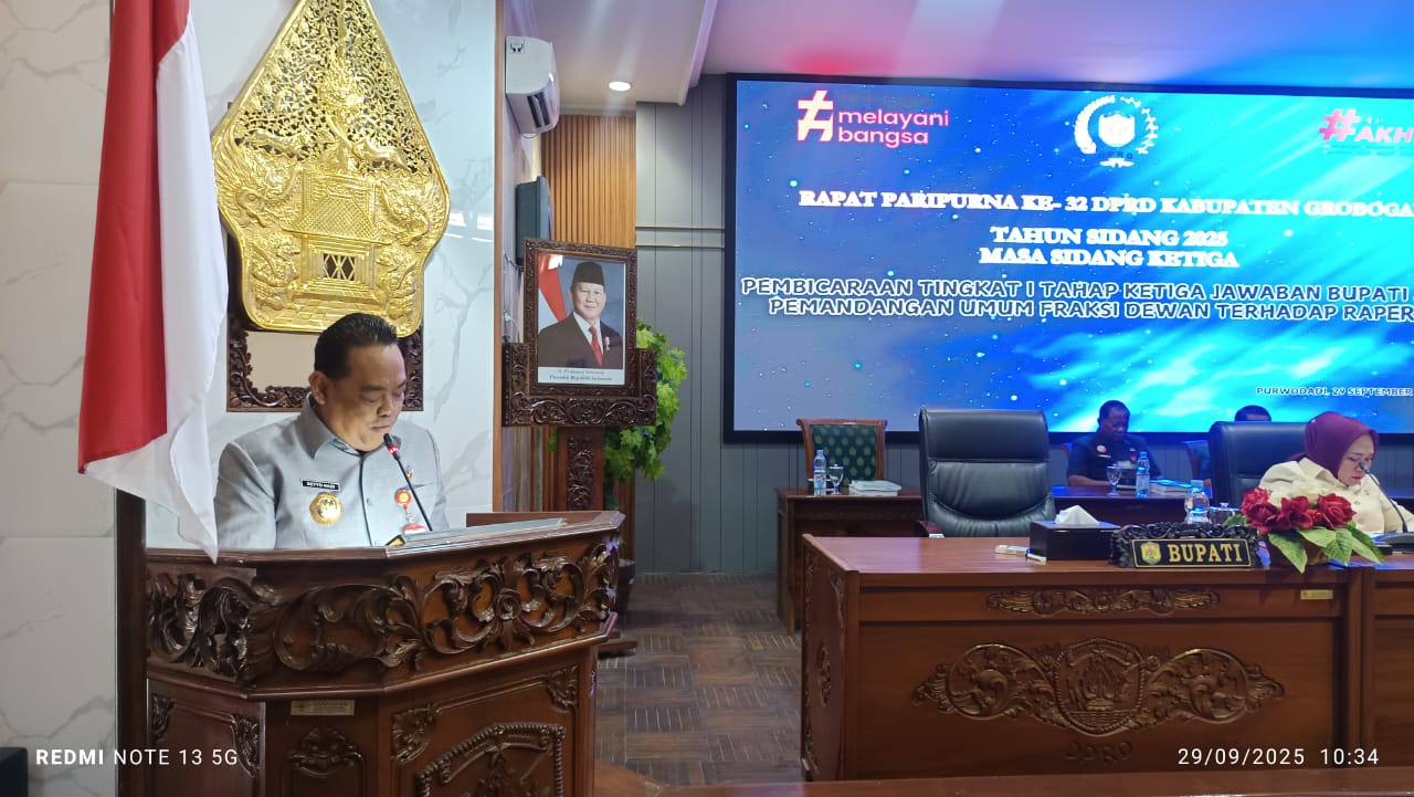 BUPATI GROBOGAN SETYOHADI TELAH MENYAMPAIKAN JAWABAN BUPATI ATAS PEMANDANGAN UMUM 7 (TUJUH) FRAKSI ATAS RAPERDA TENTANG APBD TA. 2026 ....